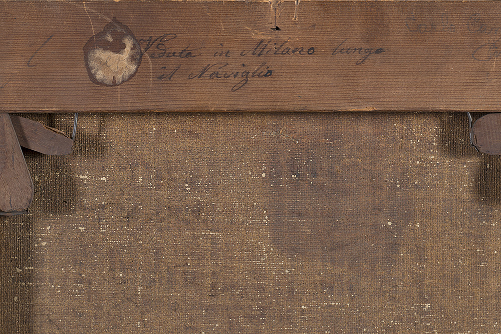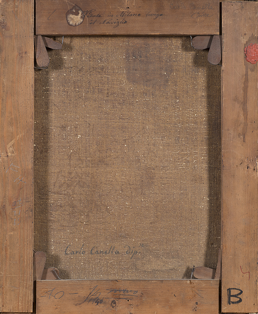 Carlo Canella (Verona 1800 - Milano 1879) "Naviglio nella Strada...