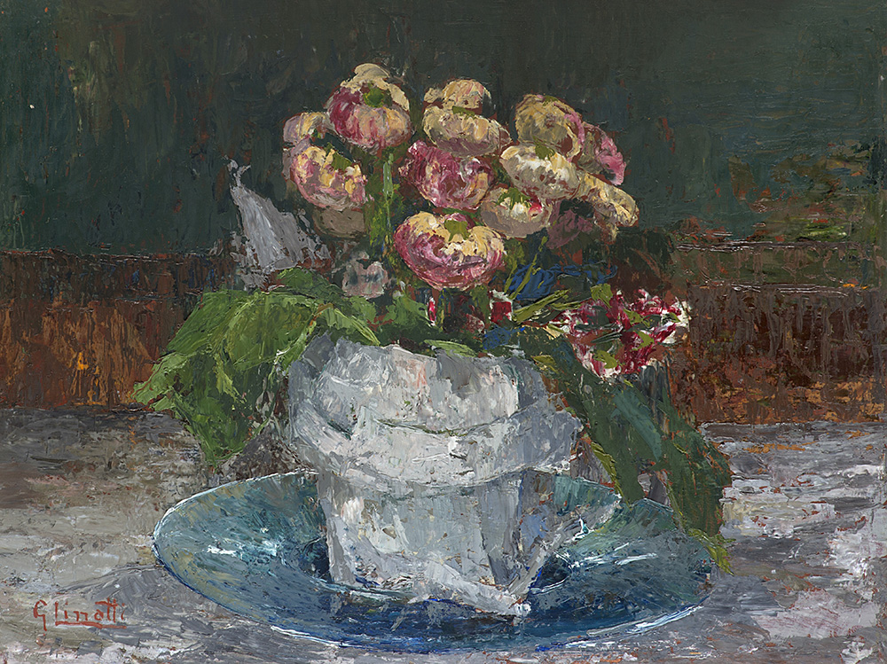 Guido Cinotti (Siena 1870 - Milano 1932)"Ranuncoli" olio su compensato (cm...