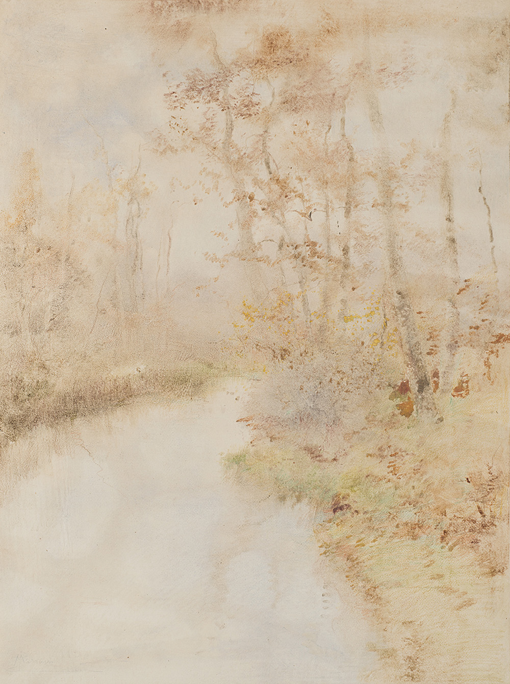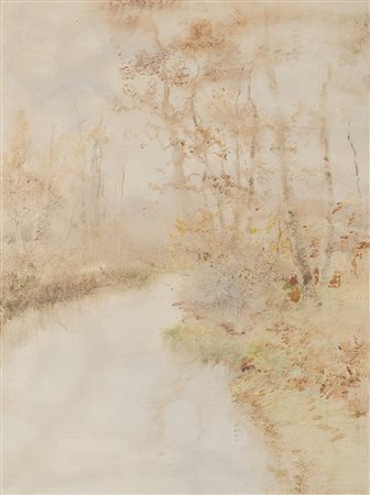 Pompeo Mariani (Monza 1857 - Bordighera 1927)"Paesaggio fluviale"monotipo (mm...