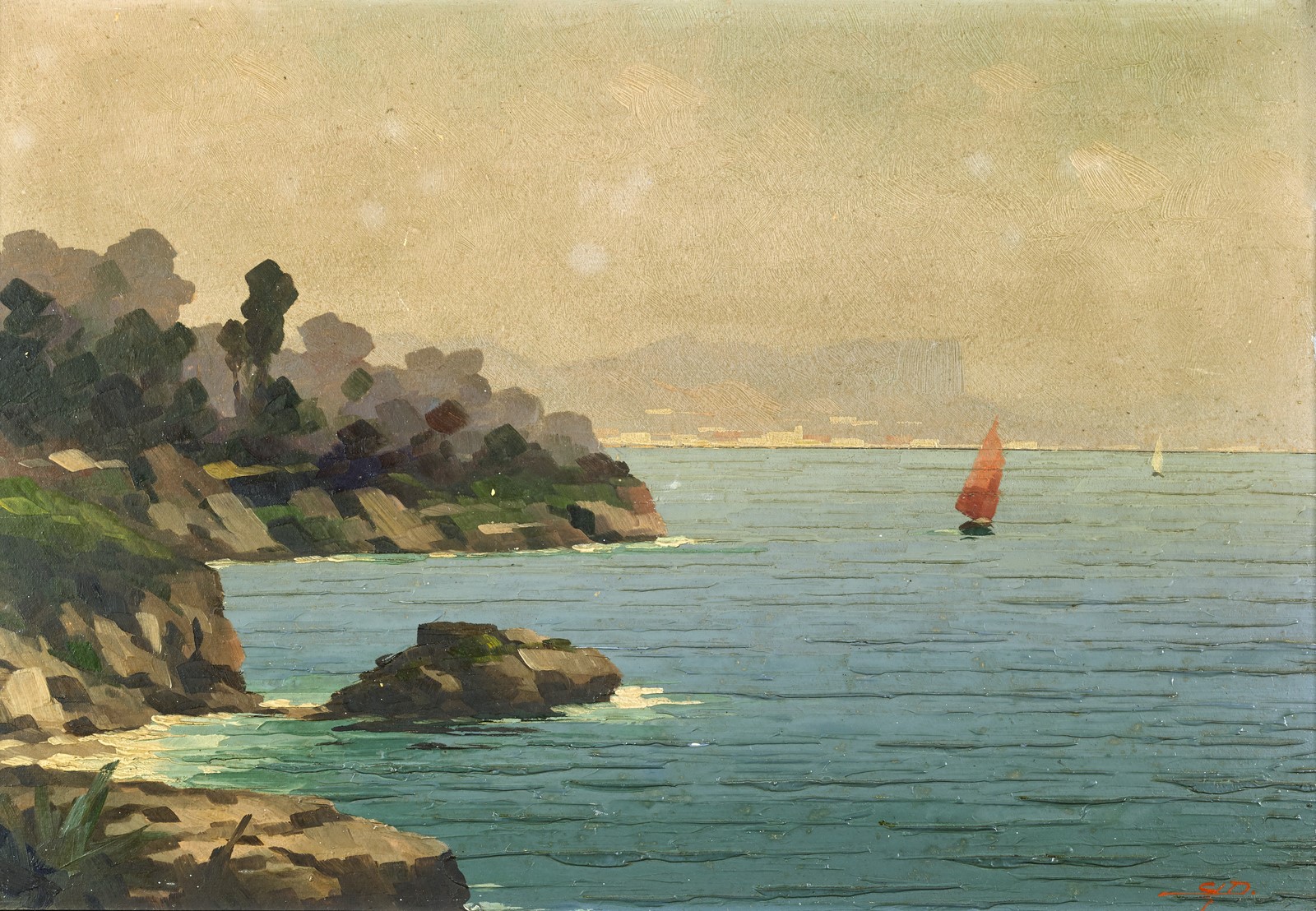 DE LAI GINO (1891 - 1960) Untitled. Oil on pressboard. Cm 50,00 x 33,00. Signature lower right. At the back artist's stamp. Cornice presente
