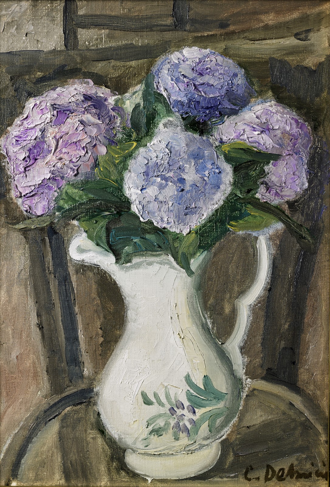 DE AMICIS CRISTOFORO (1902 - 1987) Hydrangeas. Oil on canvas . Cm 30,00 x 50,00. Signature lower right. At the back title and signature. Cornice presente