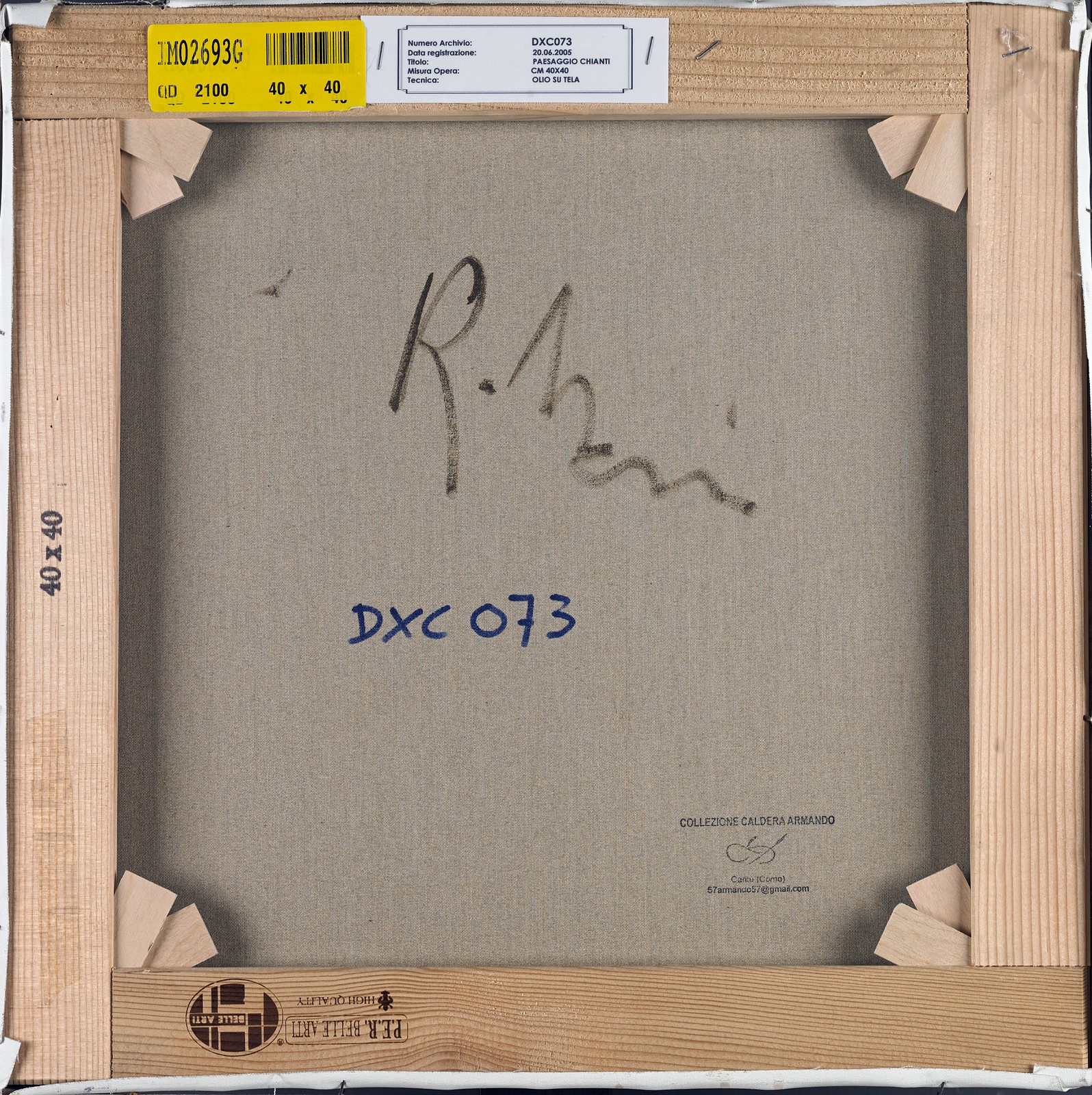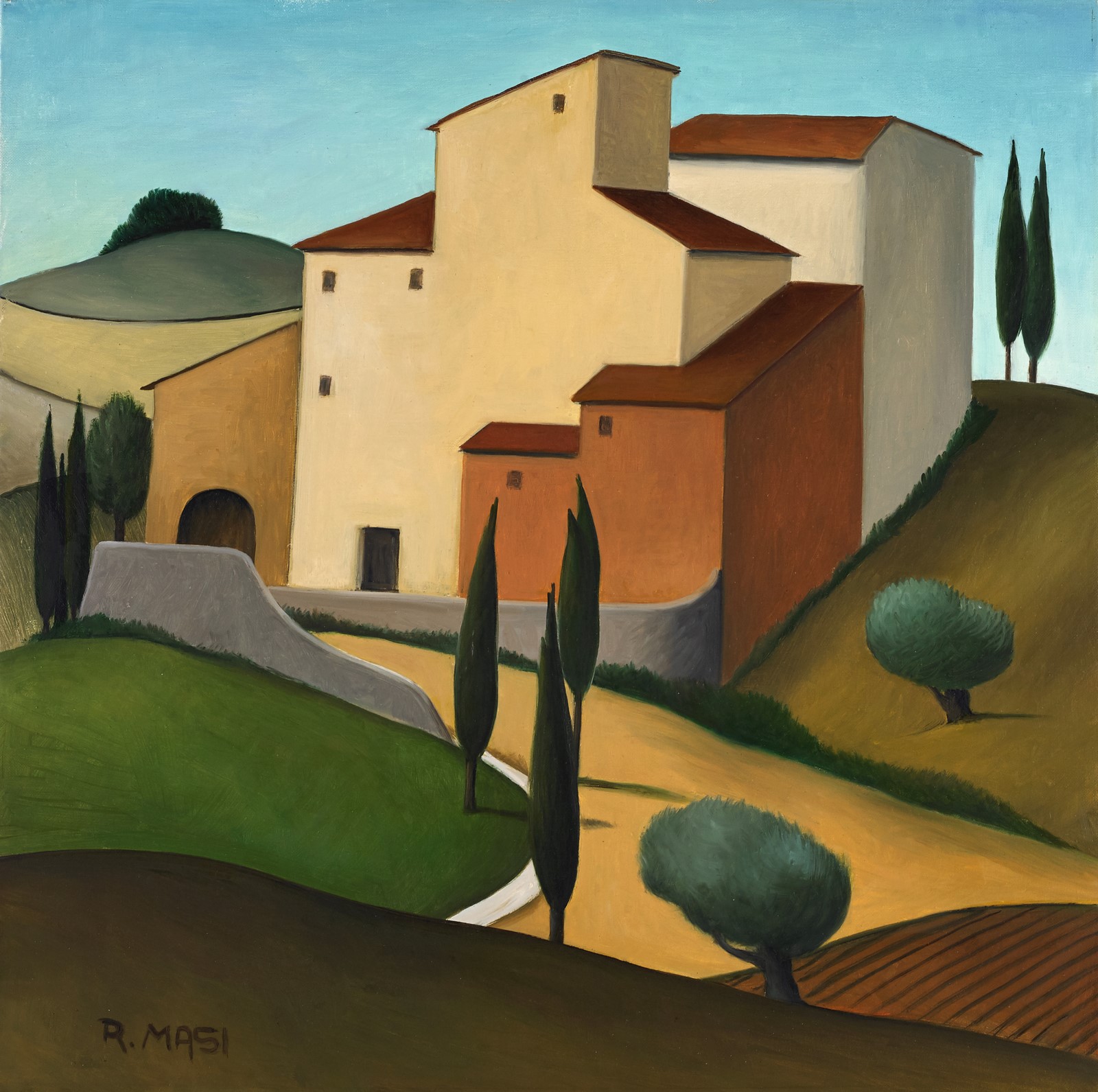 MASI ROBERTO (1940 - 2011) Chianti landscape. Oil on canvas . Cm 40,00 x 40,00. Signature lower left and at the back. Masi archive's authenticity certificate on photo with artist's signature. Provenance: Telemarket. Caldera Collection. Cornice presente
