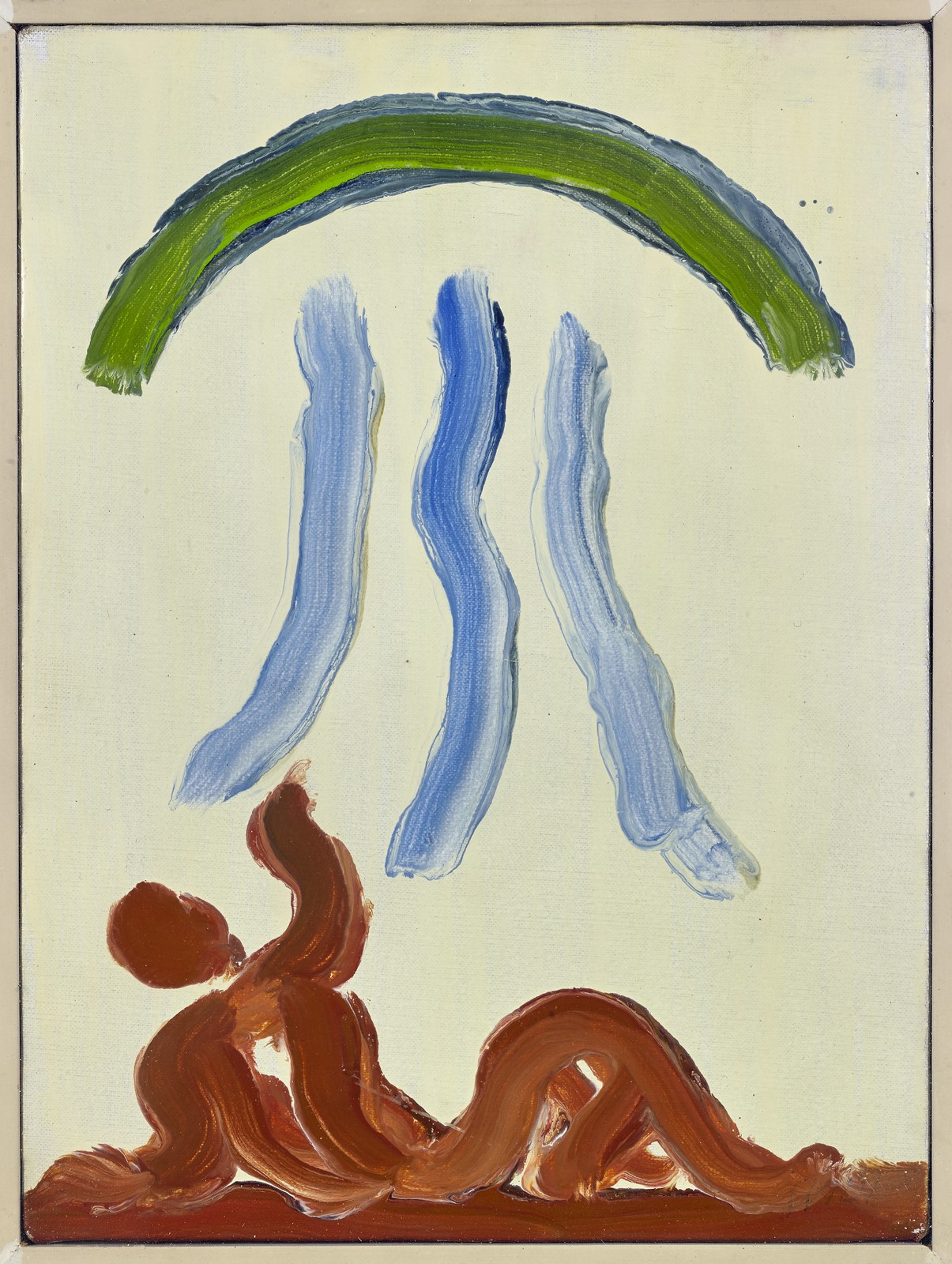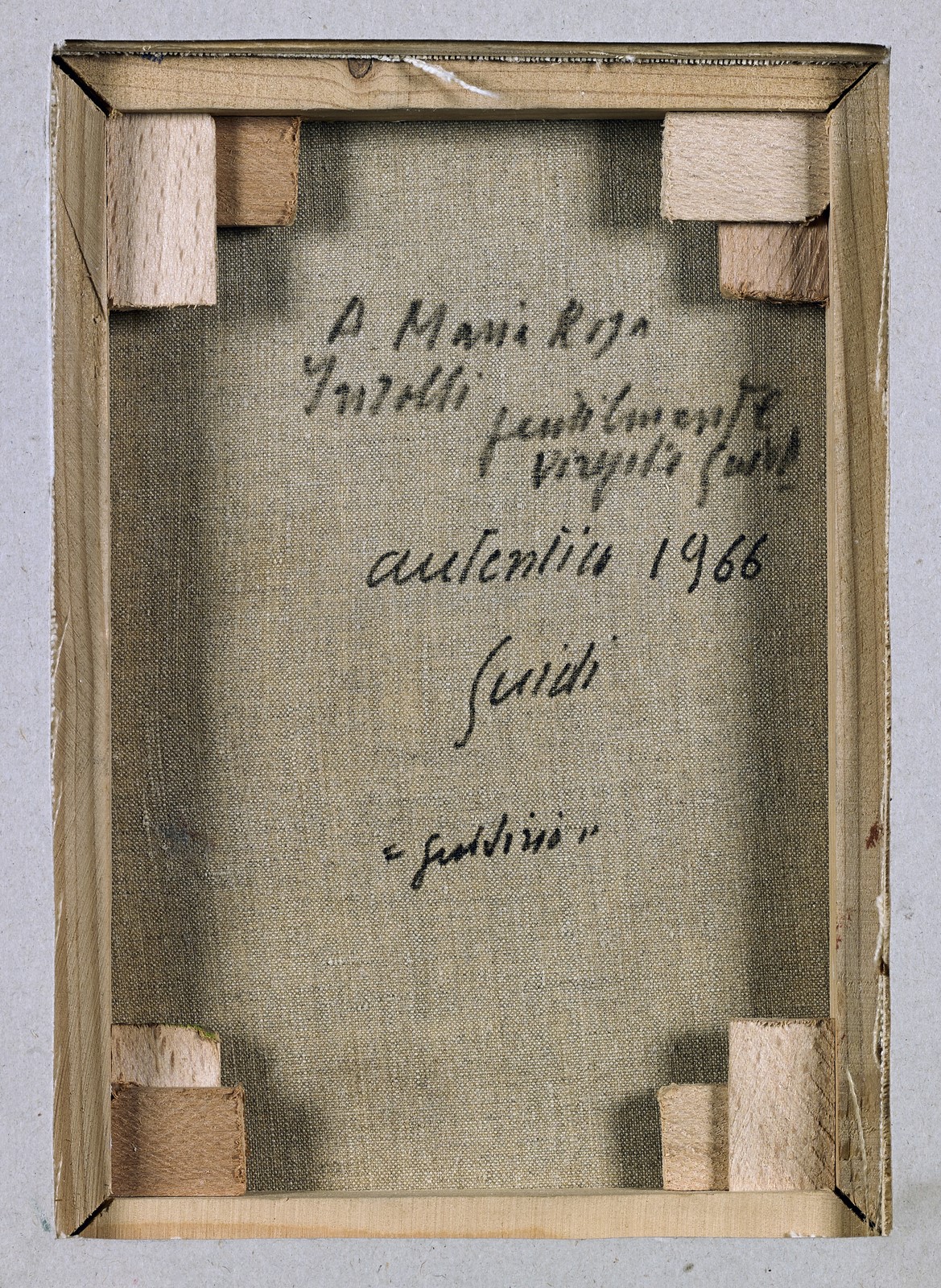 GUIDI VIRGILIO (1891 - 1994) Judgment. 1966. Oil on canvas . Cm 20,00 x 30,00. Signature lower right. At the back title, signature, year and dedication. Cornice presente