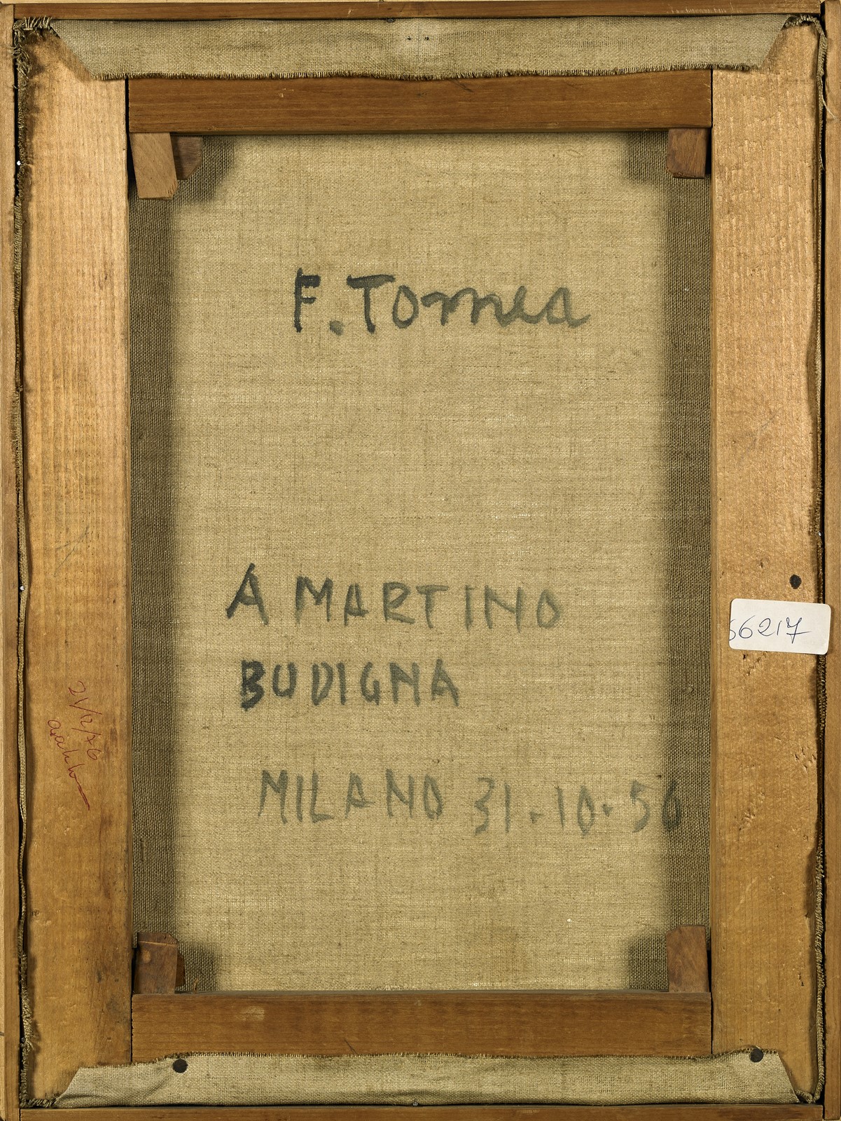 TOMEA FIORENZO (1910 - 1960) Senza titolo. Olio su tela . Cm 30,00 x 50,00. Firma in basso a sinistra. Al retro firma e dedica. Provenienza: eredità Inzoli, Brescia. Parte del ricavato verrà devoluto in beneficenza come da indicazioni testamentarie. Cornice presente