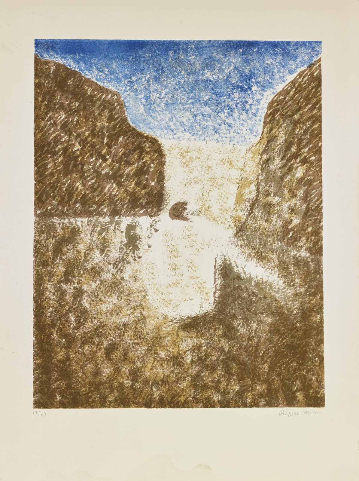 SAVINIO RUGGERO (n. 1934) Untitled. Lithograph. Cm 50,00 x 70,00. 19/70. Edition and signature lower in pencil. Coop 77 - Artivisive, Milan stamp lower left. Small defects. Cornice presente