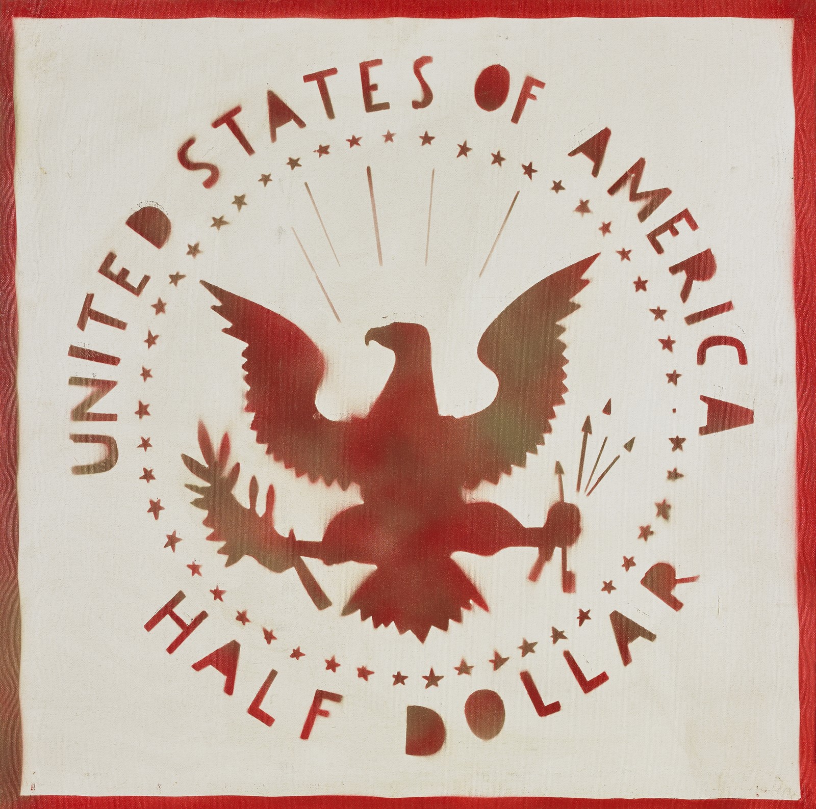 ANGELI FRANCO (1935 - 1988) Half dollar. Multiplo. Cm 70,00 x 70,00. Firma al retro. Questo pezzo appartiene ad una serie di 1000 esemplari eseguiti nel 1987. Dichiarazione di autenticità Angiolino Calestani. Cornice presente