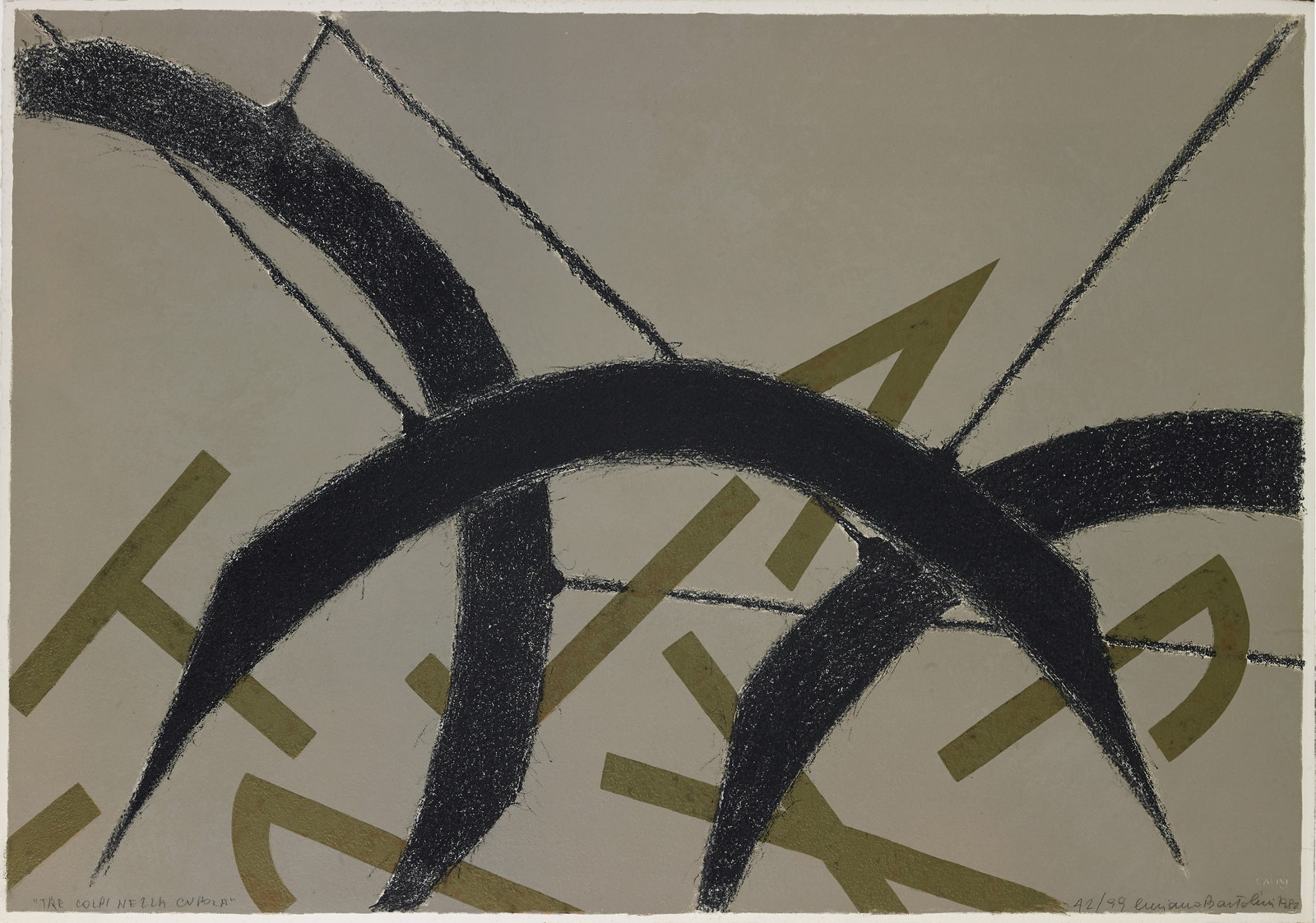 BARTOLINI LUCIANO (1948 - 1994) Untitled. (Tre colpi nella cupola). 1982. Silkscreen. Cm 74,00 x 51,50. 42/99. Title, edition, signature and year lower in pencil. Carini stamp lower right.