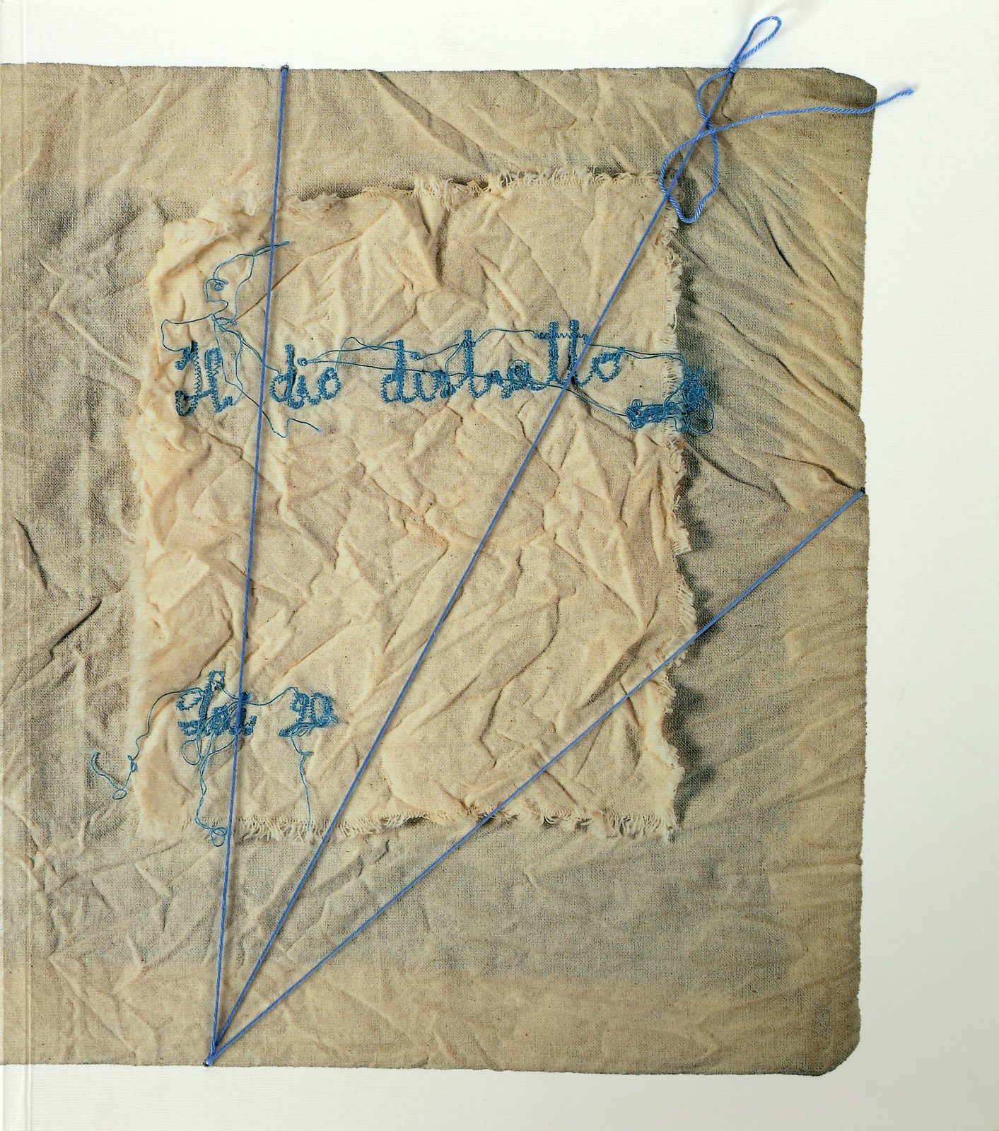 LAI MARIA (1919 - 2013) Il Dio distratto. Libro d'arte. Cm 28,00 x 33,00. A.D. arte duchamp, Cagliari 2006. Il libro è un'interpretazione per immagini del racconto che Giuseppe Dessì scrisse per Maria Lai, il libro non è di quelli usuali: non presenta parole ma ricami. Fili sulla copertina. Presente confezione originale.