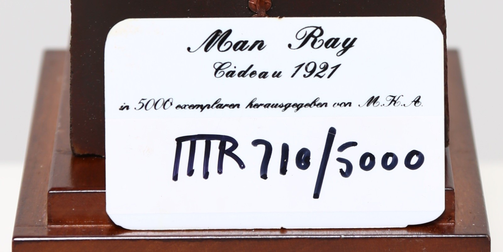 MAN RAY (1890 - 1976) Cadeau. Iron and wood.. Cm 15,00 x 31,00 x 12,00. 710/5000. Edition, signature and title on the handle. 1921-1974.
