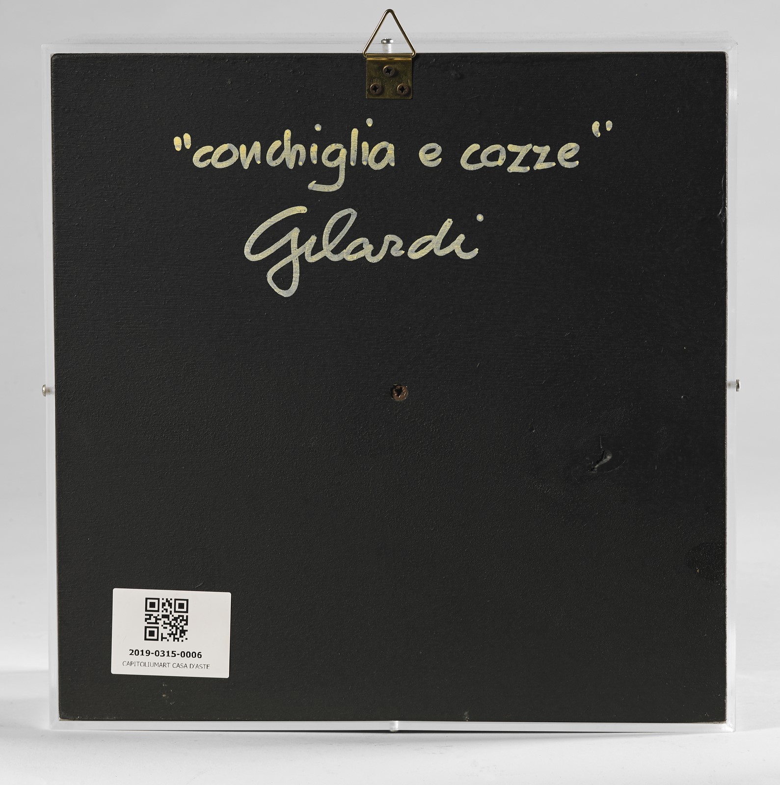 GILARDI PIERO (n. 1942) Conchiglia e cozze. 2007. Poliuretano. Cm 30,00 x 30,00. Al retro titolo e firma, Entro teca di plexiglass. Autentica dell'artista su fotografia. Pubblicazione: Piero Gilardi - Natura Espansa a cura di Andrea Poleschi, 16 Dicembre 2016 - 17 Febbraio 2017, Prearo Editore, Milano, p.13. Cornice presente