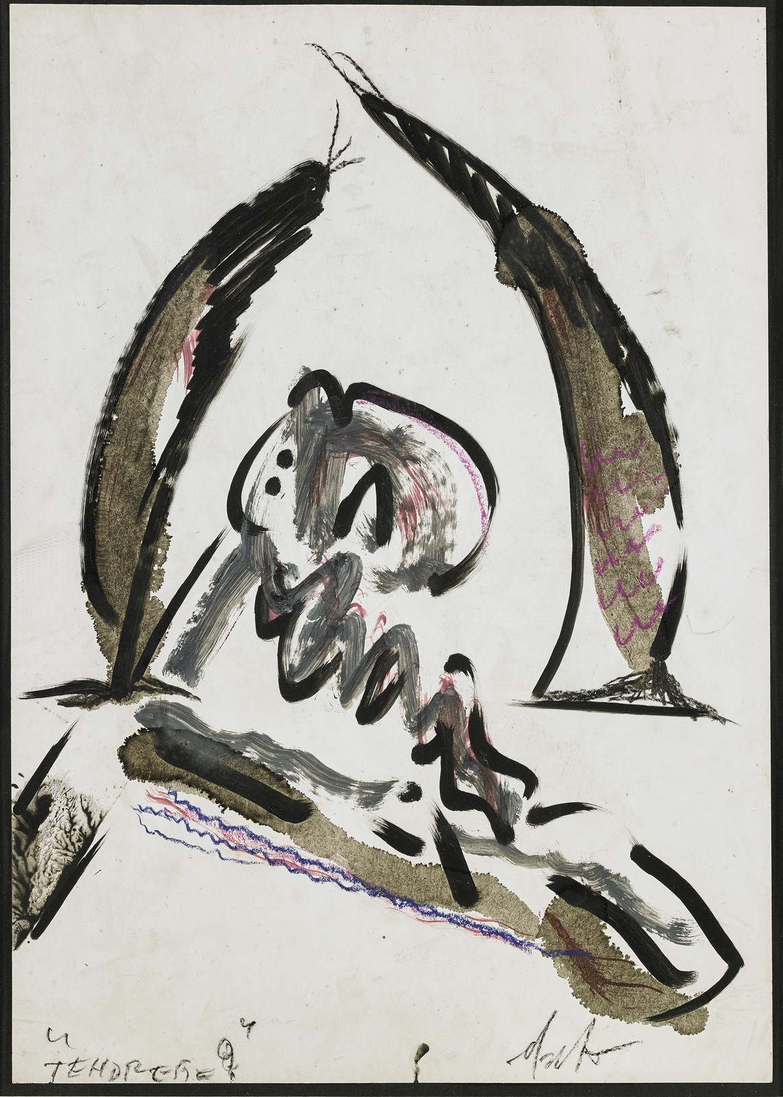 DANGELO SERGIO (n. 1932) Senza titolo. Tecnica mista su carta. Cm 30,00 x 42,00. Firma in basso a destra. Cornice presente