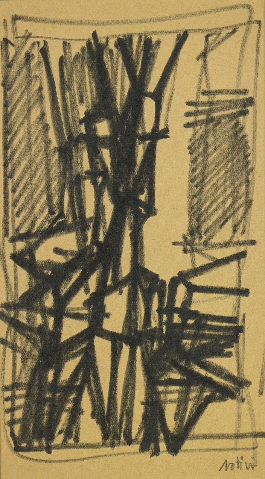 NATIVI GUALTIERO (1921 - 1999) Studio. 1956. China su carta. Cm 12,00 x 19,00. Firma in basso a destra. Opera archiviata presso l'Archivio Gualtiero Nativi come da documentazione fotografica allegata all'opera riportante il relativo numero d'inventario. Cornice presente