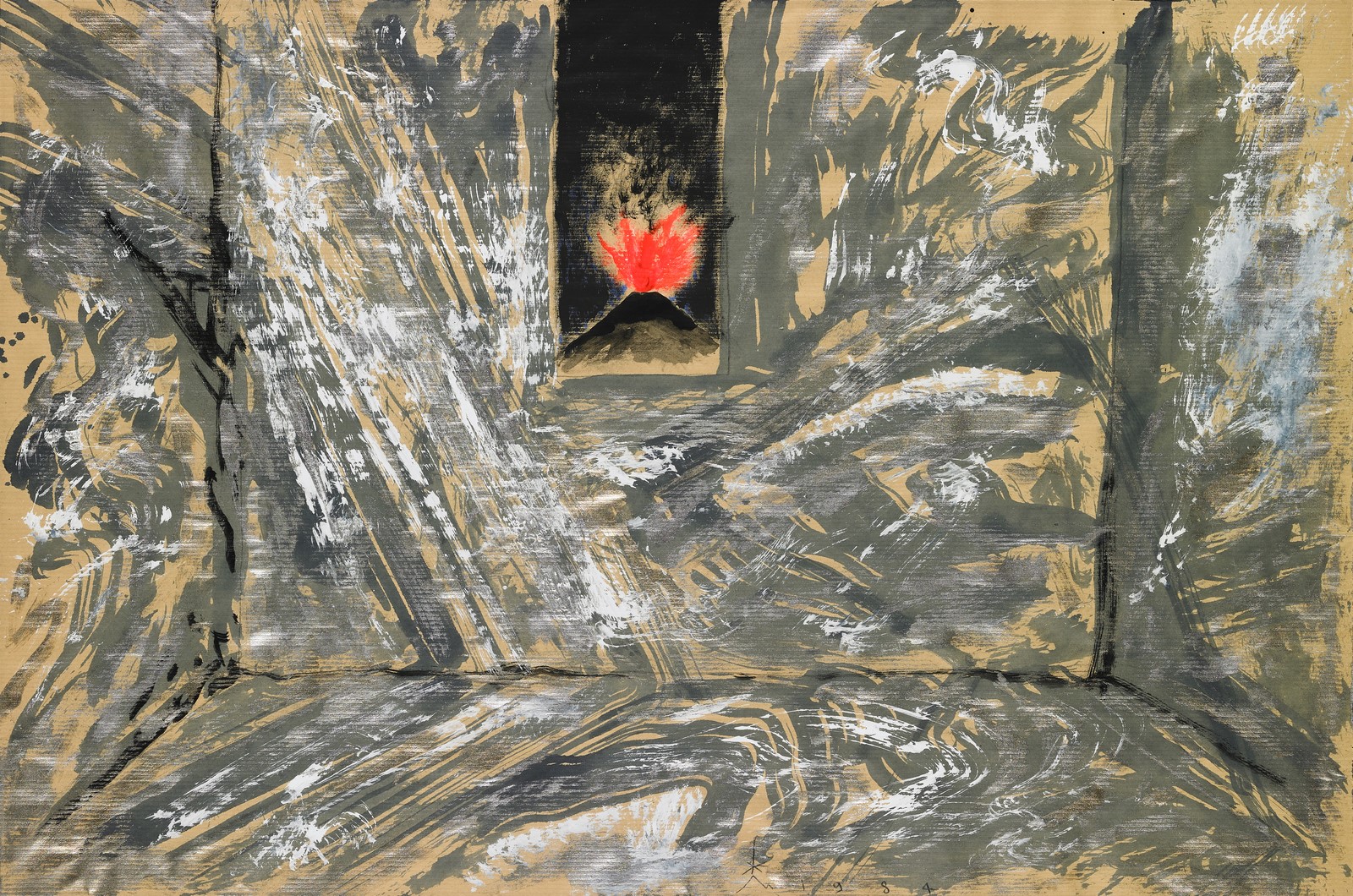 MERLINO SILVIO (n. 1952) Senza titolo. 1984. Tecnica mista su carta. Cm 74,00 x 49,00. Firma e anno in basso a destra. Cornice presente