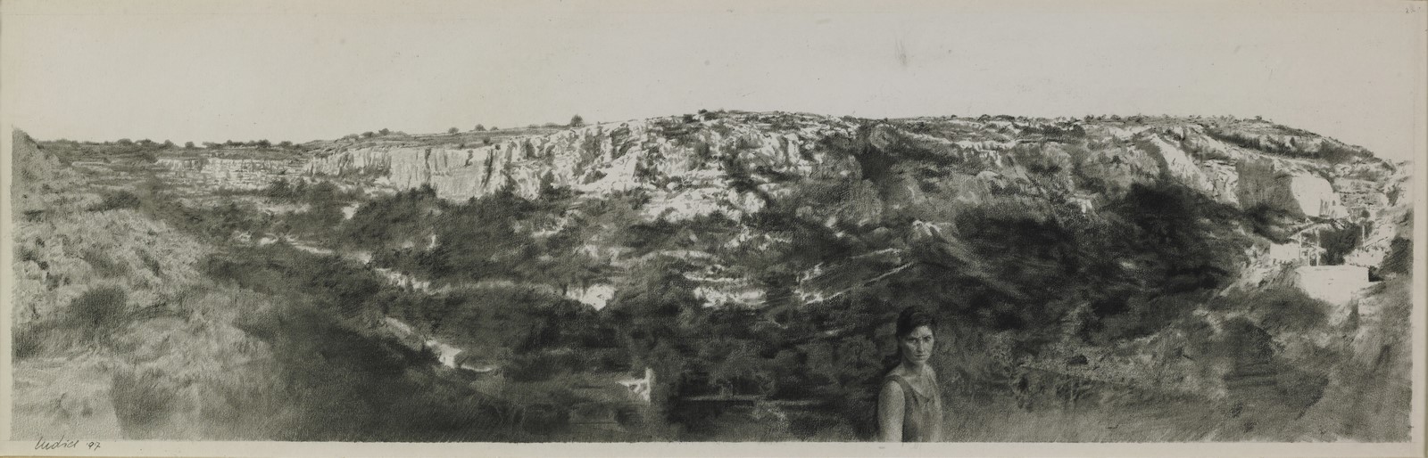 IUDICE GIOVANNI (n. 1970) Paesaggio Ibleo con ritratto di Silvana. 1997....
