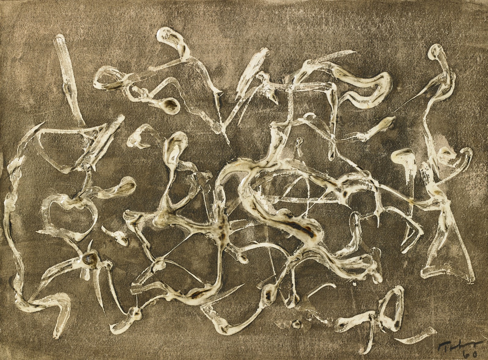 TOBEY MARK (1890 - 1976) Senza titolo. 1960. Tempera su carta. Cm 16,50 x 12,00. Firma e anno in basso a destra. Autentica su fotografia del Commitee Mark Tobey, Munster. Cornice presente