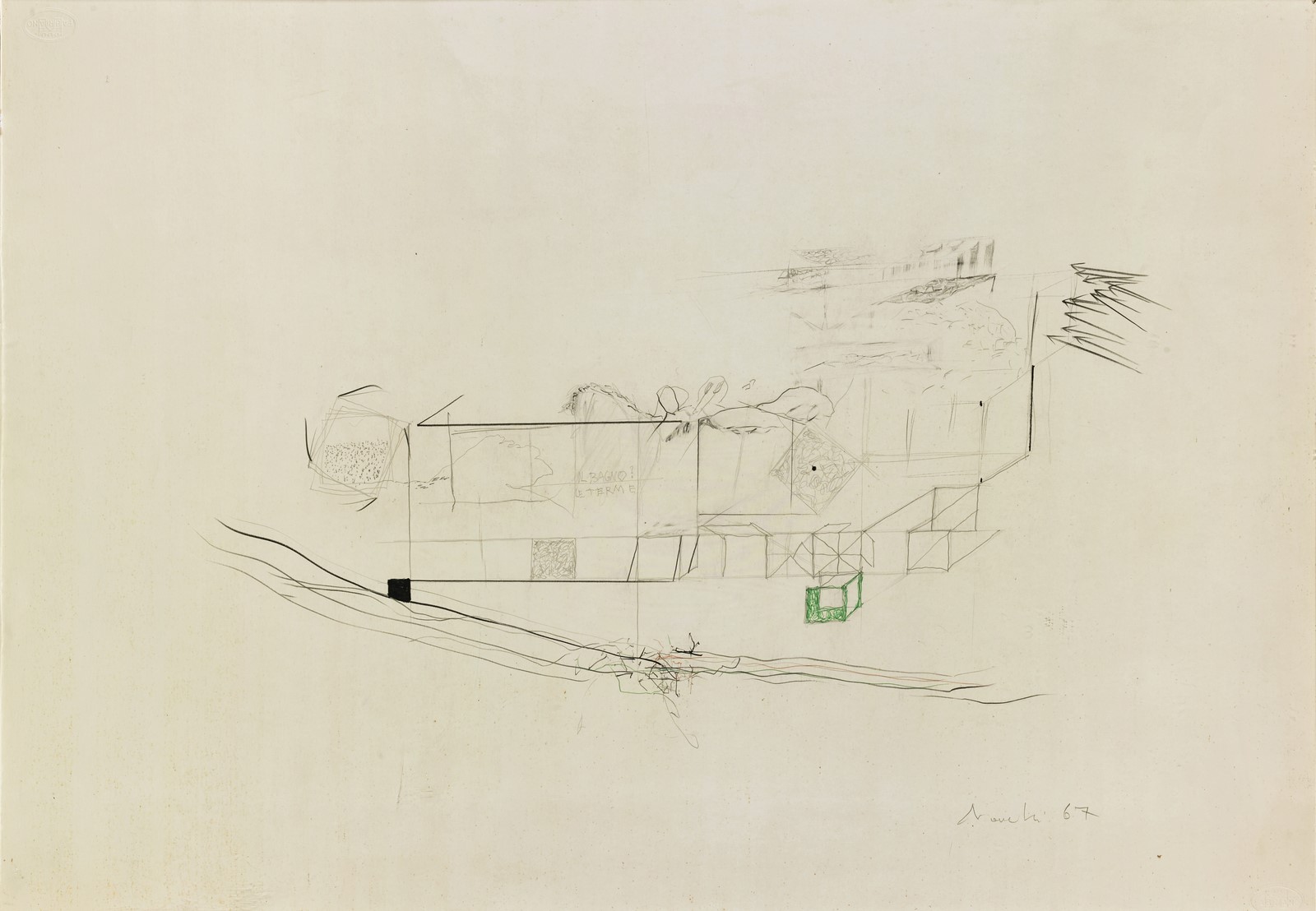 NOVELLI GASTONE (1925 - 1968) Senza titolo. 1967. Tecnica mista su carta. Cm...