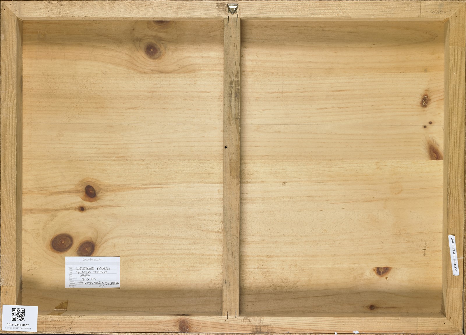 Claudio Bottello Arte, Torino (come da etichetta sul retro). Esposizioni: Puri segni. Dal tratteggio razionale al “ghirigoro” istintivo nell’astrazione contemporanea, opere su carta dal 1943 al 2013, Galleria Peccolo, Livorno, febbraio 2014. Illustrata nel catalogo della mostra a pagina 67. Si ringrazia Paola Bonani dell'Archivio Gastone Novelli, Roma, per l'aiuto nella compilazione di questa scheda. Cornice presente