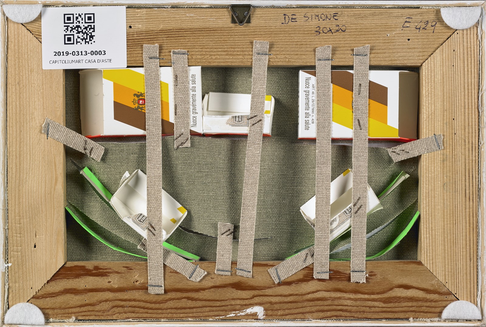 DE SIMONE VINCENZO (n. 1947) Untitled. 1975. Mixed media and collage on canvas. Cm 30,00 x 20,00. Signature lower right. Artist's authenticity certificate on photo.