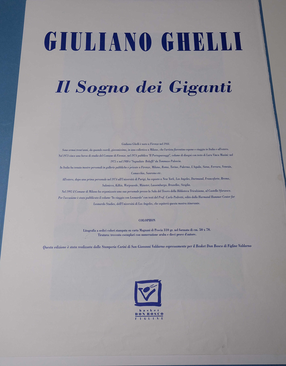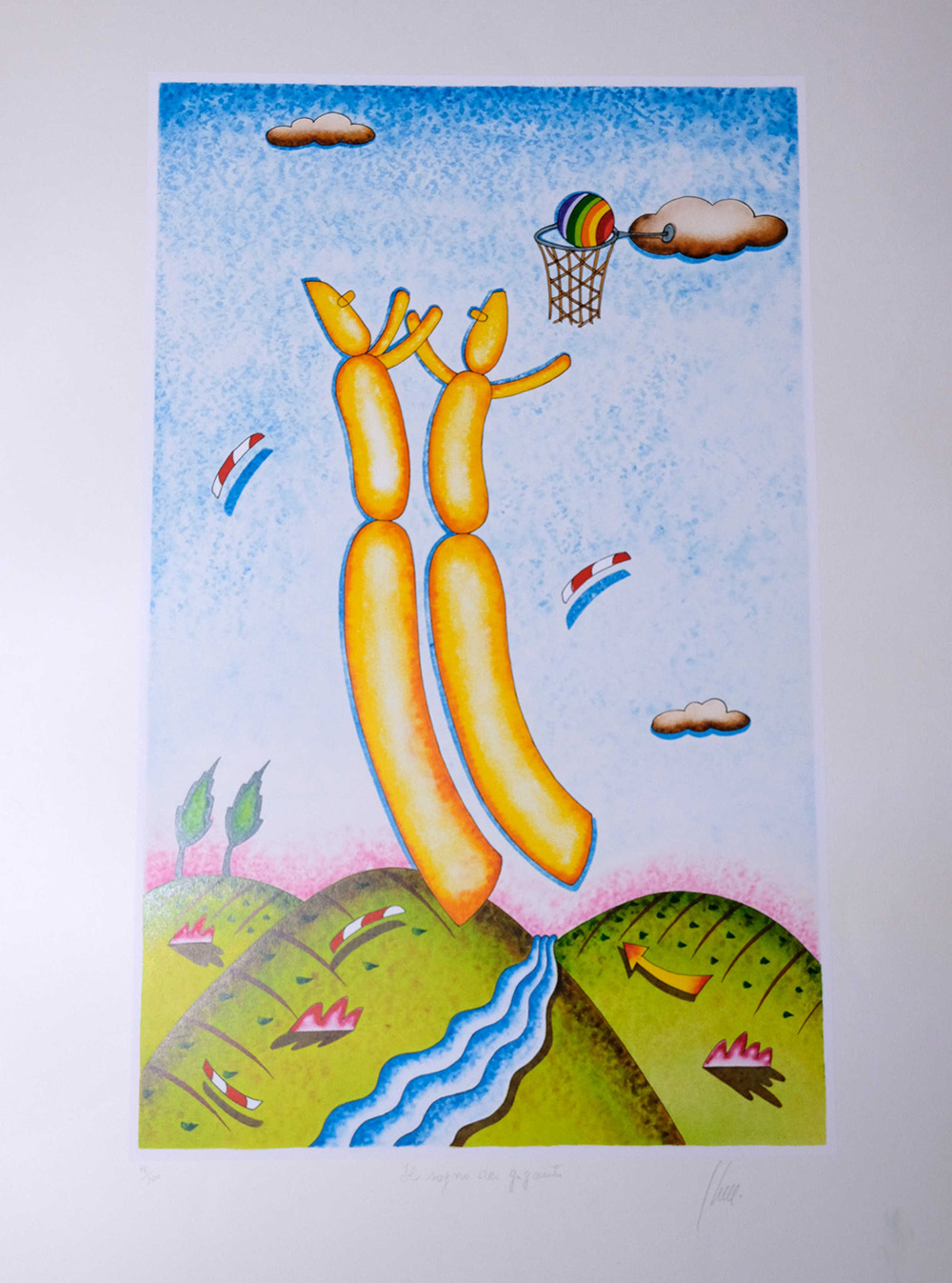 Giuliano Ghelli, Il sogno dei giganti Litografia n.36/300, 70cm x 50cm. Firmato fronte opera