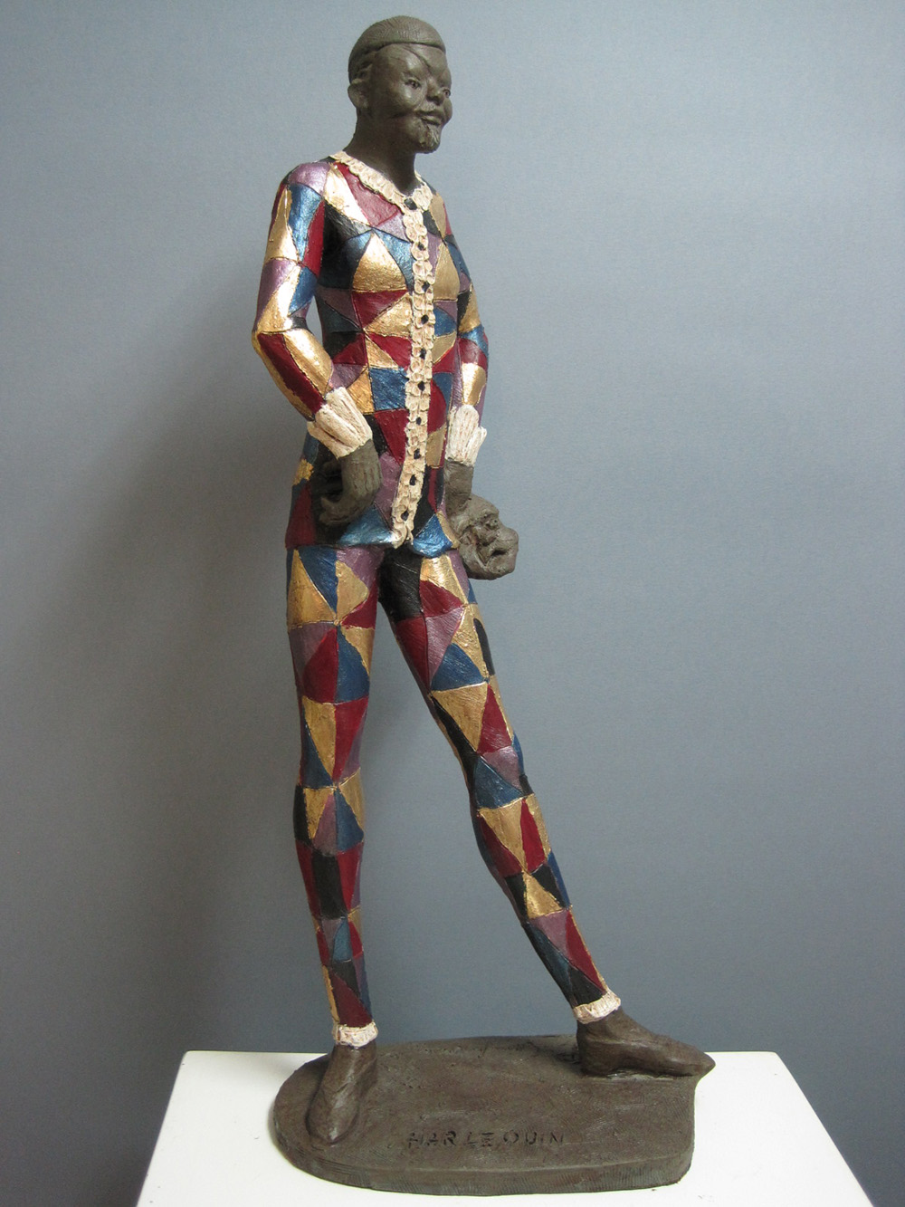 Paolo Camporese, Harlequin 2017 Terracotta policroma con foglia similoro, 48cm x 21cm x 12cm. Autentica su foto dell'artista