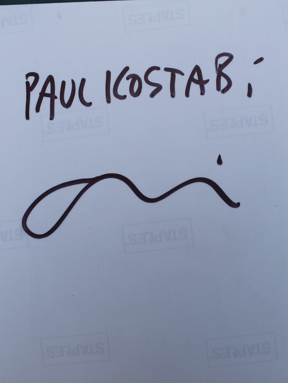 Paul Kostabi, Setting the record straight 2007 Olio su tela, 60cm x 45cm. Autentica su foto dell'artista