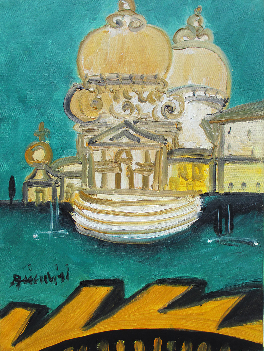 Remo Brindisi, Venezia Olio su tela, 40cm x 30cm. Autentica su foto dell'artista timbro Galleria Pace n.301