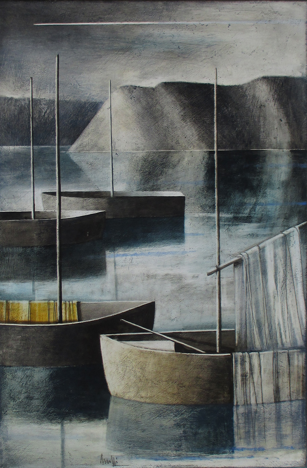 Marcello Scuffi, Marina Olio su tela, 60cm x 40cm. Autentica su foto dell'artista ed opera inserita in catalogo generale volume 1