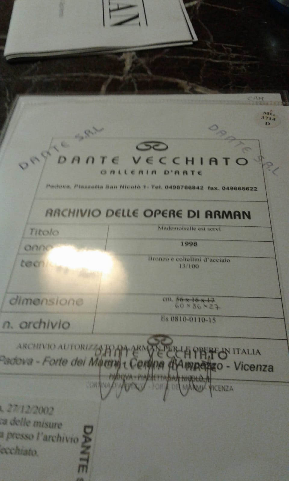 Fernandez Arman, Mademoiselle est servi 1998 Scultura in bronzo e coltellini...