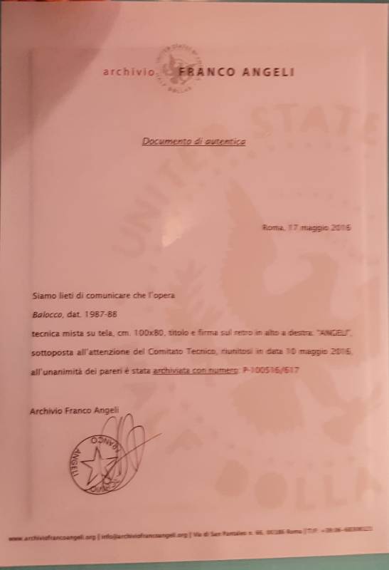 Franco Angeli, Balocco 1987 - 1988 Tecnica mista su tela, 80cm x 100cm....