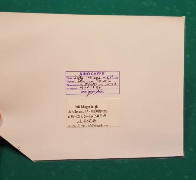 Nino Caffè, Sulla terrazza del Mincio 1973 Olio su tavola, 25cm x 29cm....