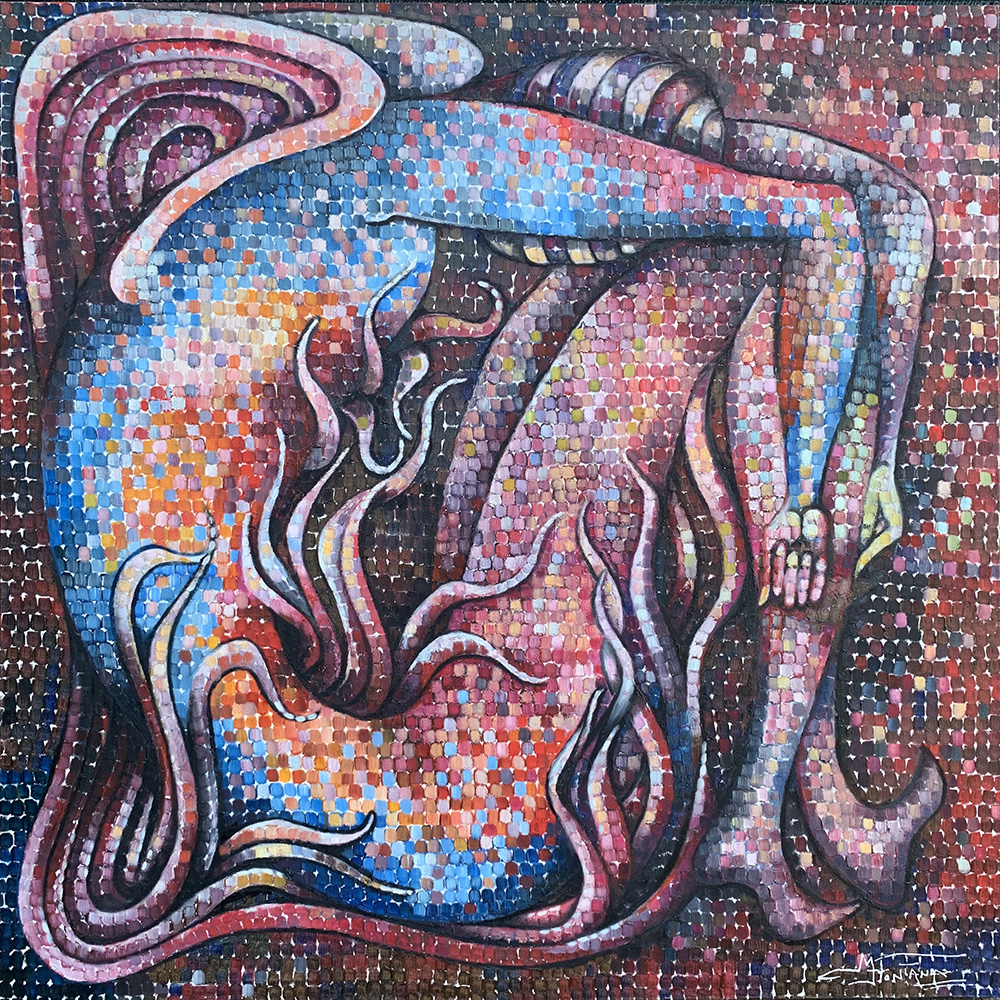 Mario Fontana, Rimorsi 2012 Olio su tela tecnica mosaico, 100cm x 100cm x...