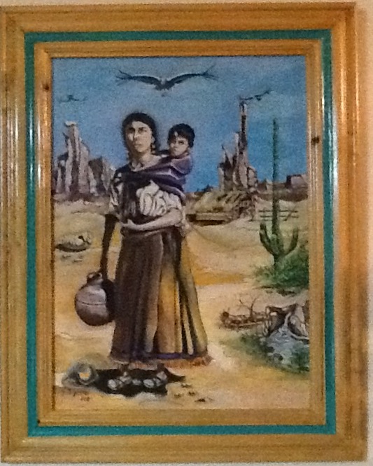 Giorgio Giovanni Polgrossi, Donna con bambino nel deserto 2018 Tempera su cartone telato, 63cm x 46cm. Autentica su foto dell'artista