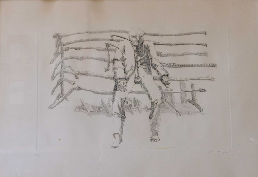 Vincenzo Gaetaniello, Uomo seduto 1979 Litografia n.112/200, 50cm x 70cm. Firmato fronte opera