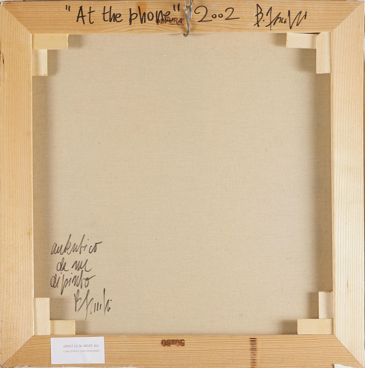 ANONIMO At the phone. 2002. Tecnica mista su tela. Cm 50x50. Al retro autentica dell'artista, firma illeggibile.