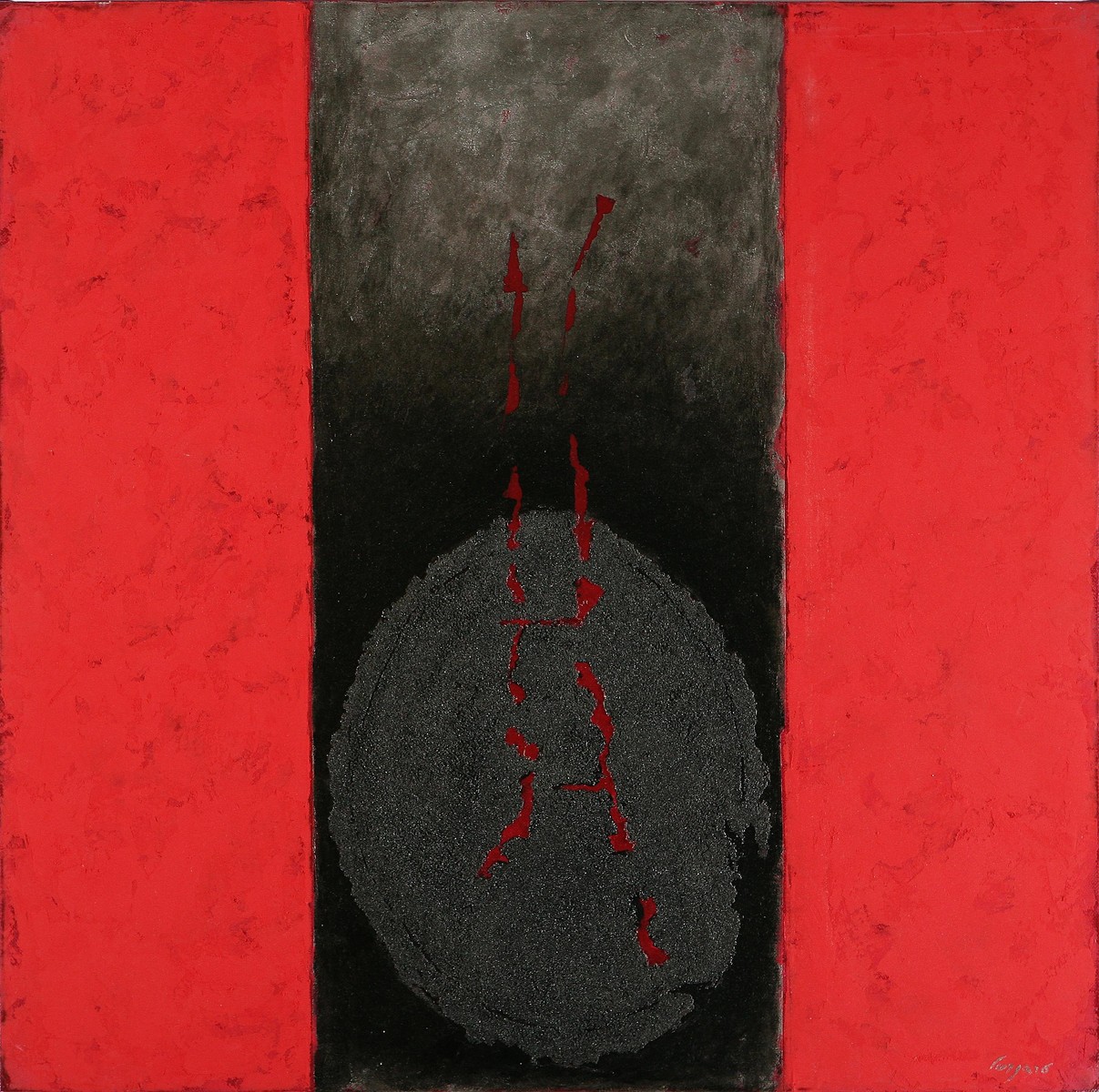 CURSARO ENZO (n. 1953) Virtù ovale X. 2008. Tecnica mista su tela. Cm 60x60. Al retro firma. Firma in basso a destra.