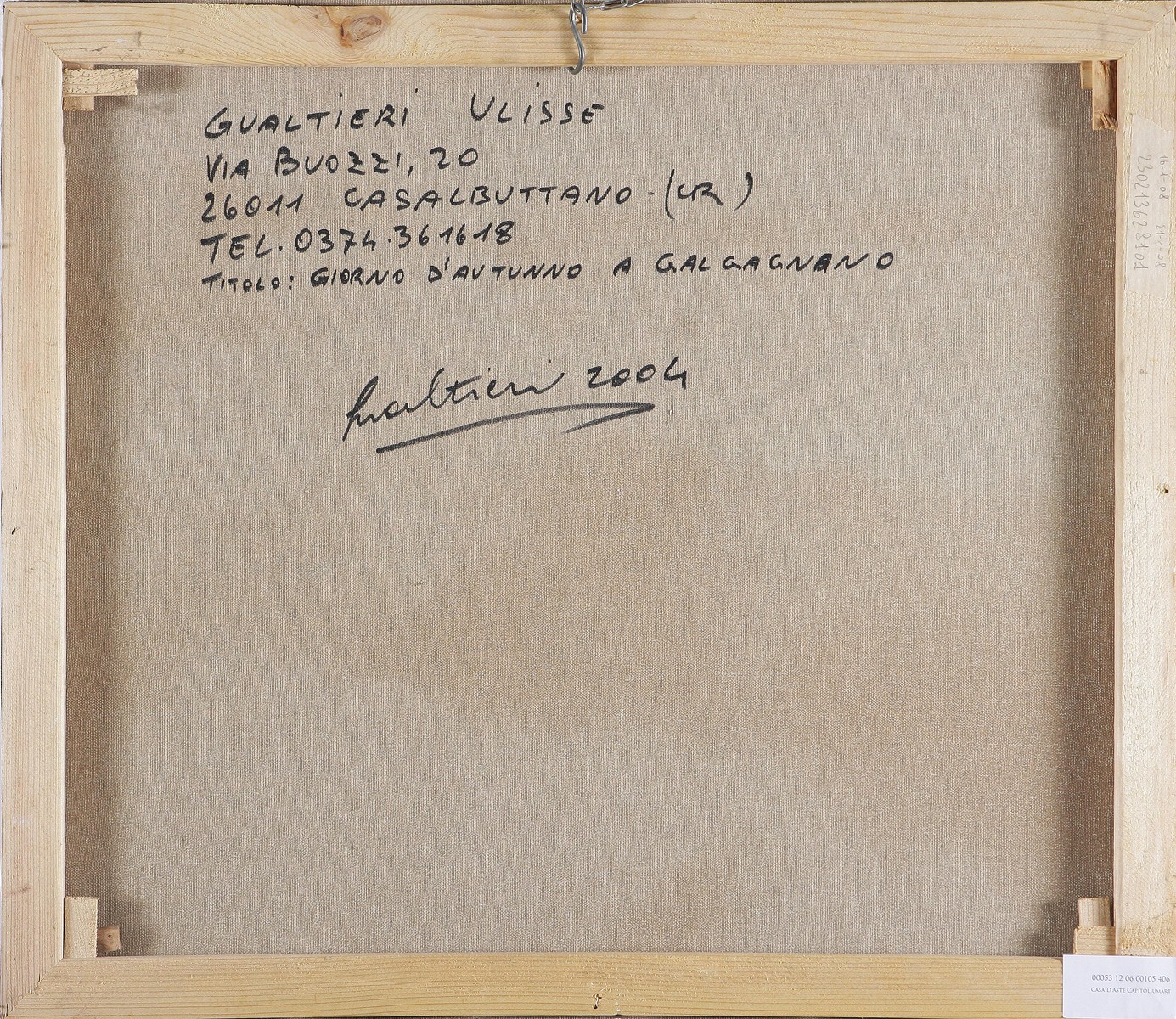 GUALTIERI ULISSE (n. 1957) Giorno d'autunno a Galgagnano. 2004. Olio su tela. Cm 60x70. Autentica dell'artista su fotografia. Al retro firma e data. Firma in basso a sinistra.