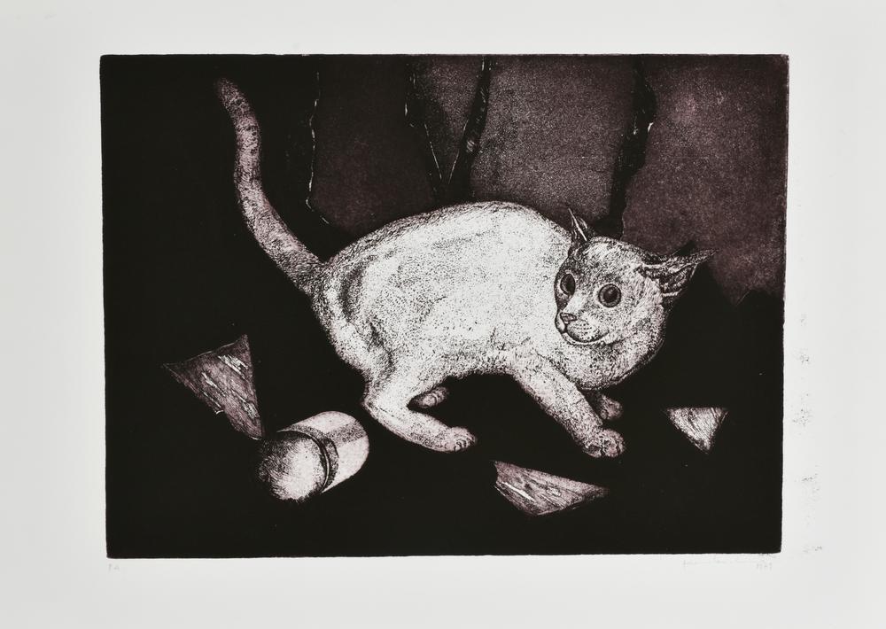 Ignoto GATTO incisione su carta, cm 37,5x52,5 (lastra cm 29,5x39,5) esemplare P.A. sul fronte: firma e data eseguita nel 1979