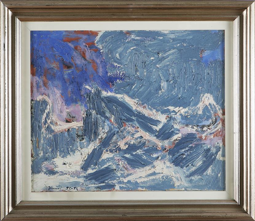 GIUNNI PIERO (1912 - 2000) Le creste innevate. 1952. Olio su tela. Cm 60x50. Al retro titolo e data. Firma e anno in basso a sinistra. Cornice presente.
