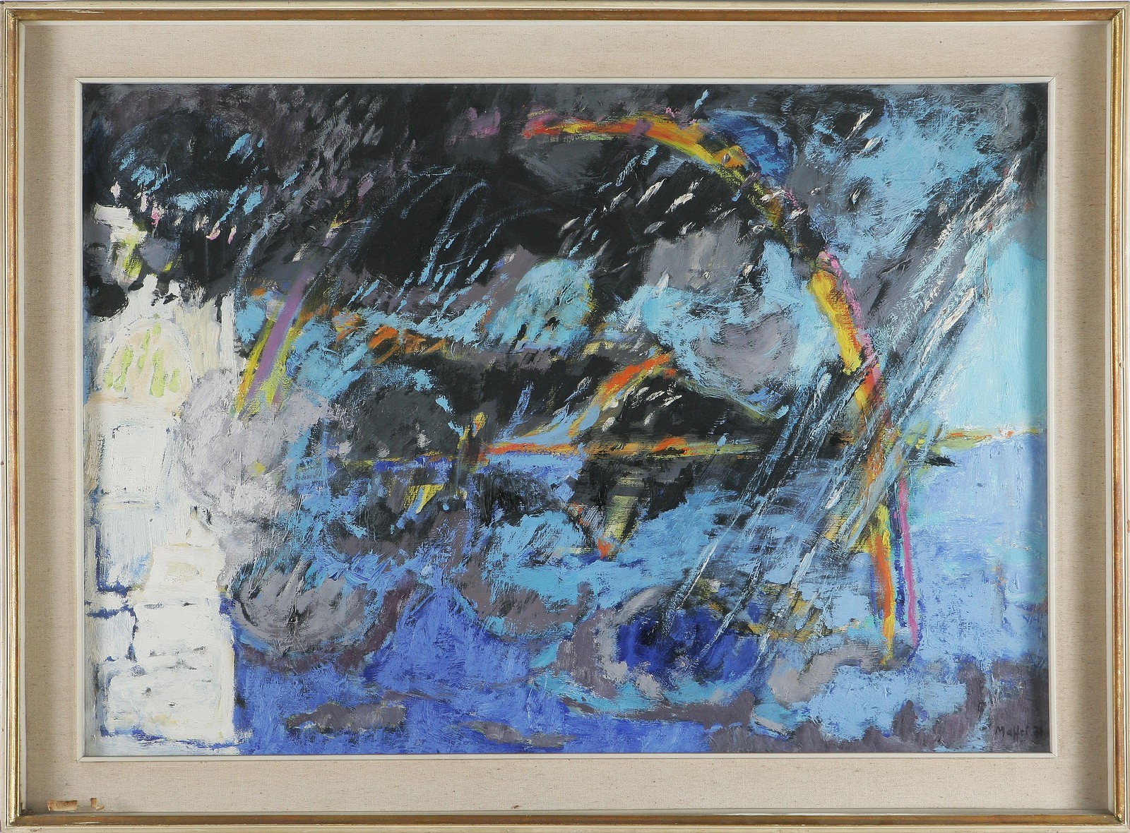 MAFFEI GINA (n. 1946) L'arcobaleno. 1970. Olio su tela. Cm 100x70. Al retro titolo, data e firma. Firma e data in basso a destra. Cornice presente.