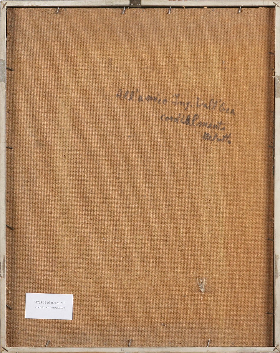 MELOTTO VITO (n. 1928) Senza titolo. 1972. Olio su tavola. Cm 23x30,5. Al retro dedica con firma dell'artista. Firma e data in basso a destra. Cornice presente.