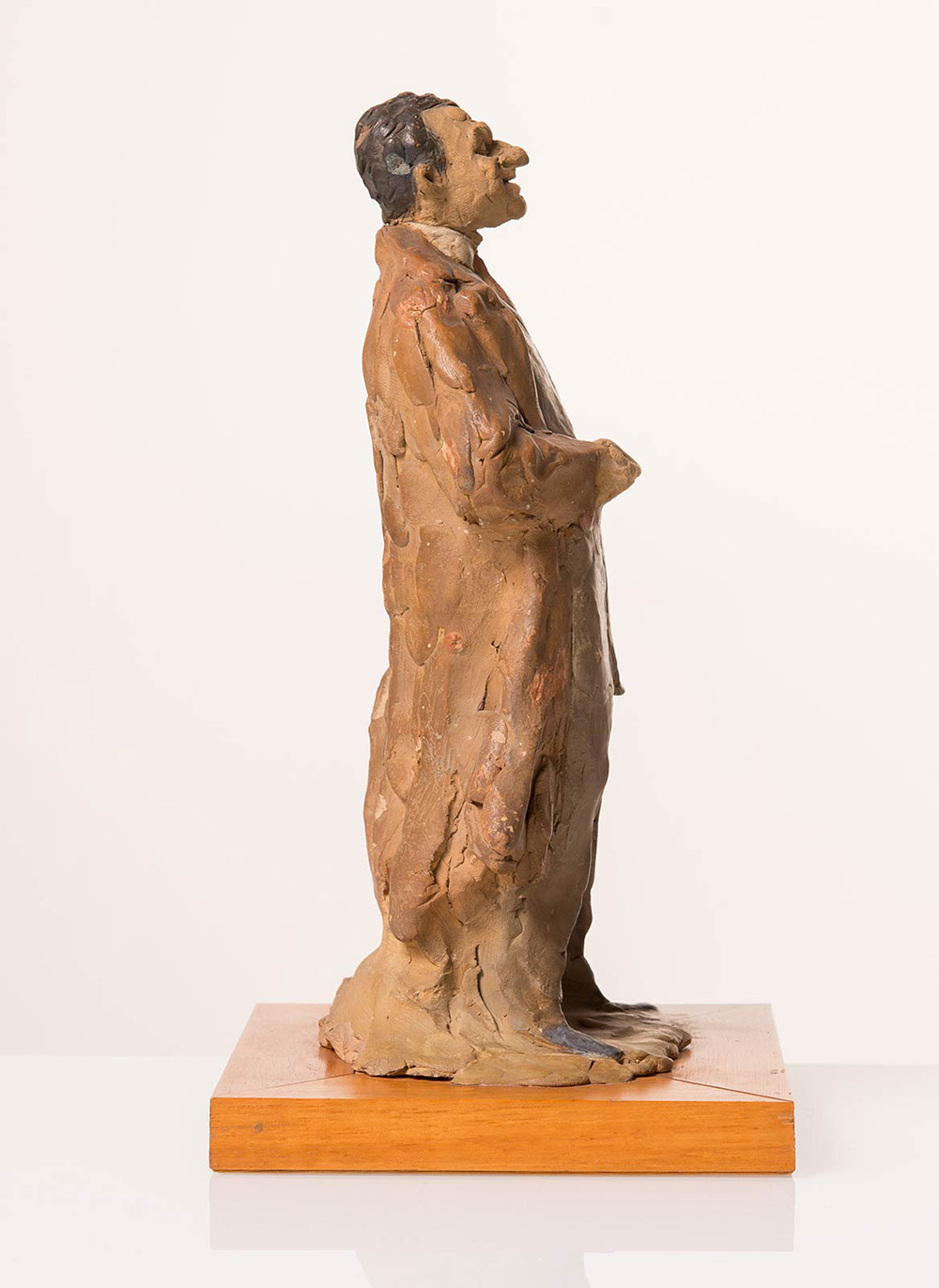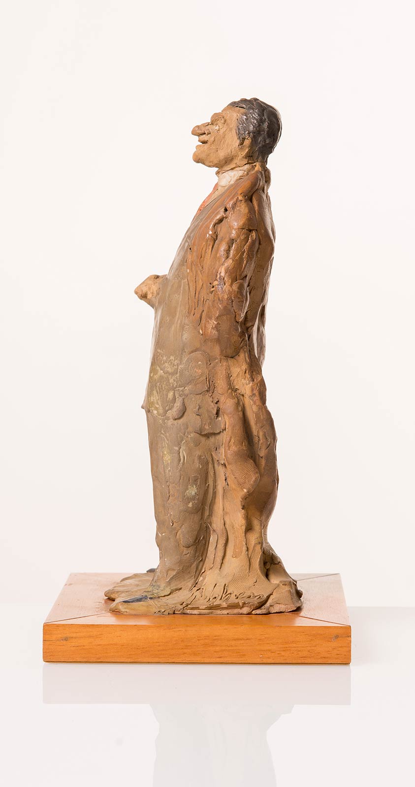 Carlo Anleri (Vergato 1943 - 2015), “Dottore”. Scultura in terracotta policroma, firmata alla base Anleri, H cm 24x13x13