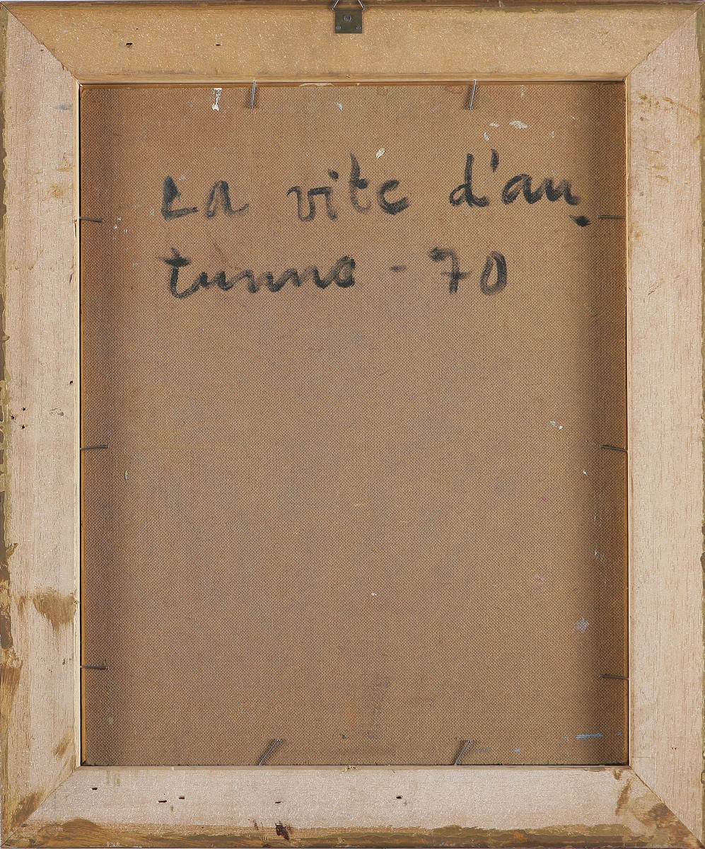 MAFFEI GINA (n. 1946) La vite d'autunno. 1970. Olio su tavola. Cm 40x50. Al retro titolo e data. Firma e data in basso a sinistra. Cornice presente.