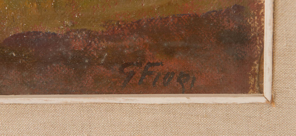 Giulio Fiori (Bologna 1909 – 1991), “Paesaggio”. Olio su cartone, firmato alla base G Fiori, H cm 22.5x76