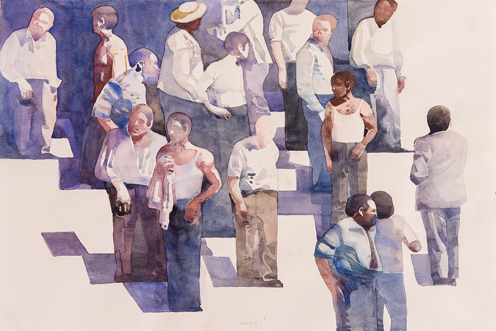 Dino Boschi (Bologna 1923 – 2015), “Curva”. Acquerello su carta, firmato in basso al centro Boschi, al retro opera titolata ‘Curva’, H cm 31x46