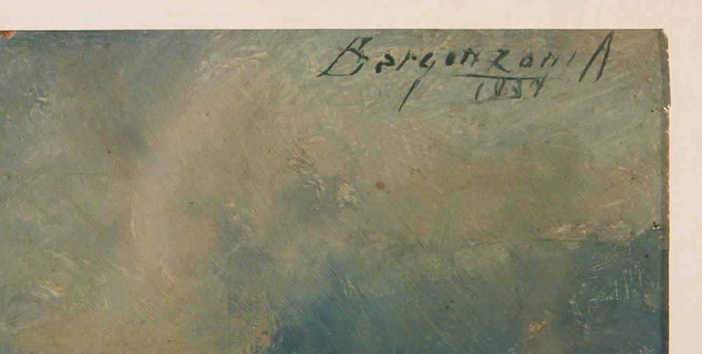 Aldo Borgonzoni (Medicina 1913 – Bologna 2004), “Paesaggio”, 1937. Olio su cartone, firmato e datato in alto a destra Borgonzoni A 1937, H cm 32x22.5