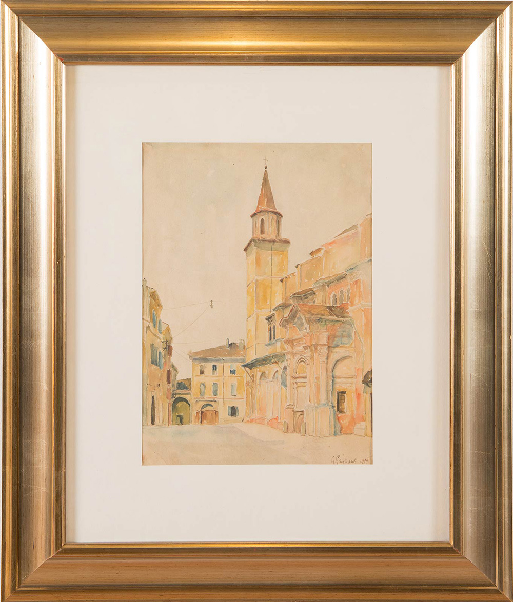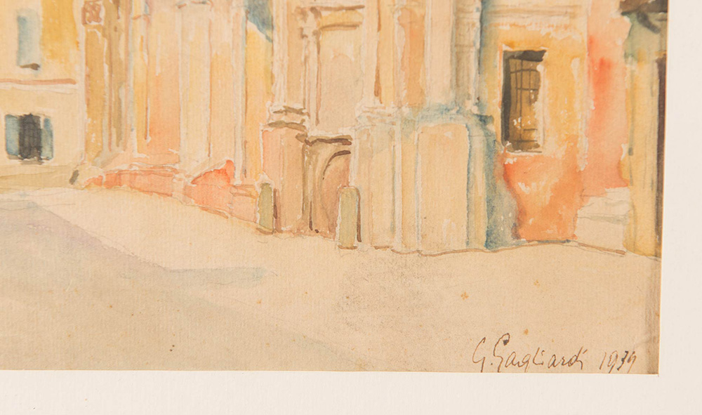 Giuseppe Gagliardi (Bologna 1902 – 2005), “Scorcio”, 1939. Acquerello su carta, firmato e datato in basso a destra G. Gagliardi 1939, H cm 31.5x23
