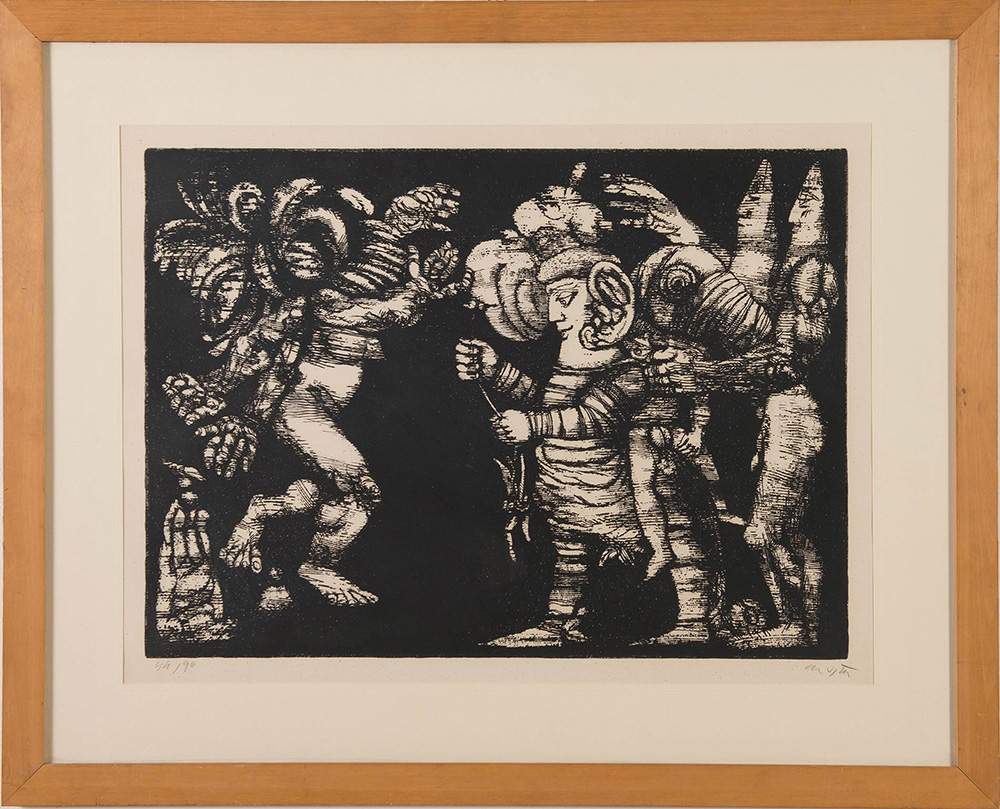 Luciano De Vita (Ancona 1929 – 1992), “Senza Titolo”. Incisione su carta, firmata in basso a destra De Vita, numero di tiratura in basso a destra 44/80, Lastra H cm 49x67