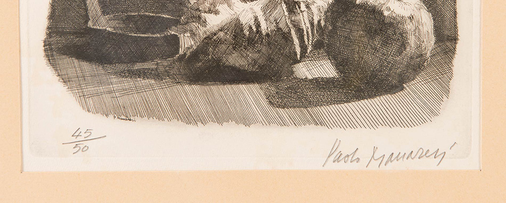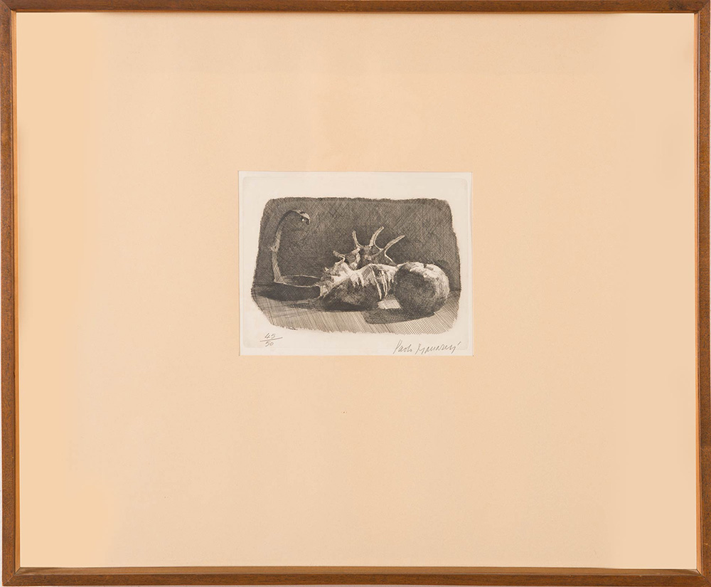 Paolo Manaresi (Bologna 1908 – 1991), “Conchiglia”. Incisione su carta, firmata in basso a destra Paolo Manaresi, numero di tiratura in basso a sinistra 45/50, Lastra H cm 16x19.5