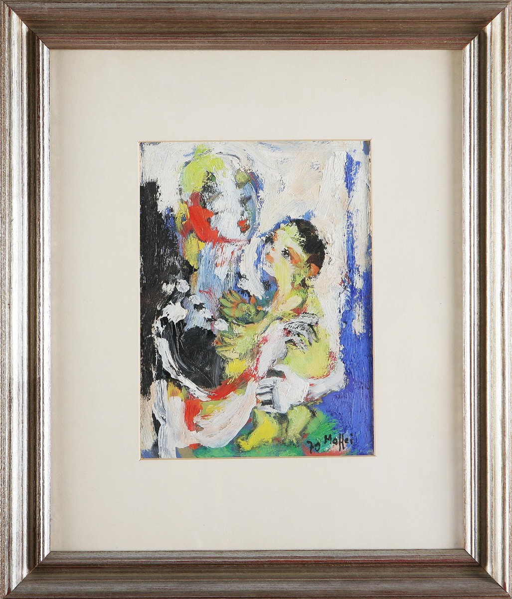 MAFFEI GINA (n. 1946) Senza titolo. 1970. Olio su tavola. Cm 17,5x24. Firma e data in basso a destra. Cornice presente.