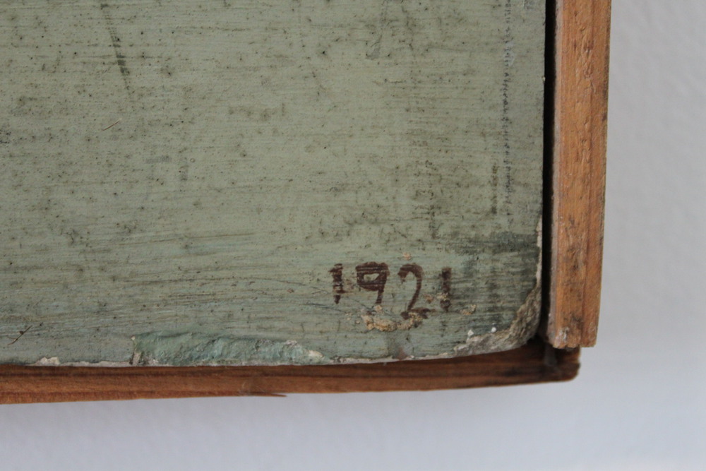 GUIDO CADORIN (Venezia 1892 - 1976) "Laguna" Olio su pannello firmato in basso a sinistra e datato 1921 in basso a destra cm 70x100 Al retro in matita sul telaio G. Cadorin 1921 "Paesaggio"